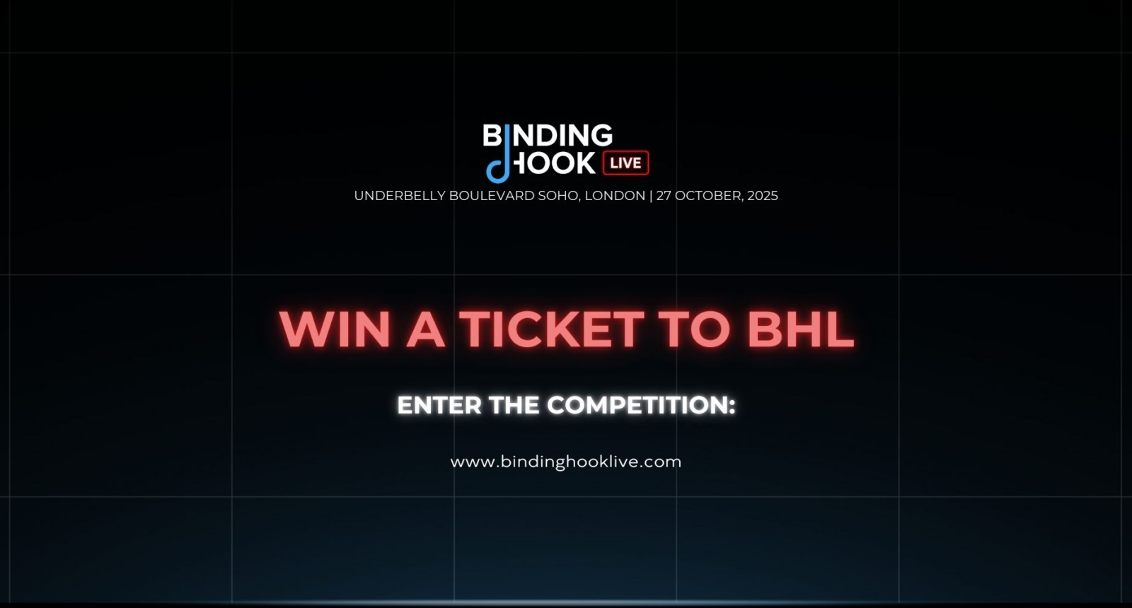 The top 5 entrants selected by the Binding Hook Live team will win the opportunity to ask their question live and in person at the event, as part of a complementary ticket package worth £429.